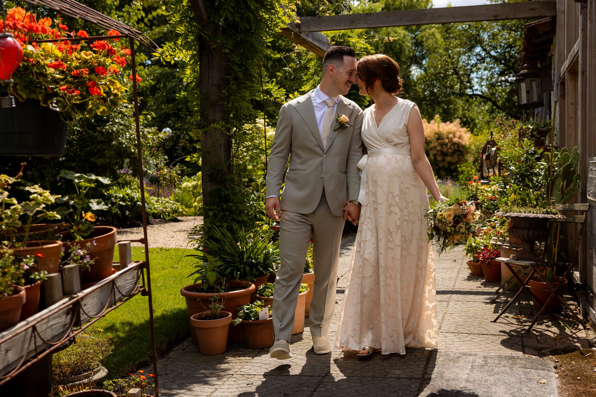 Wij hebben binnen zeer korte tijd een volledige bruiloft bij hen kunnen realiseren. Er vond duidelijke en eerlijke communicatie plaats, niets was voor hen teveel. De locatie is schitterend en betoverend, waarbij de natuur waaronder bloemen en planten in zijn volle schoonheid voorop staat.
